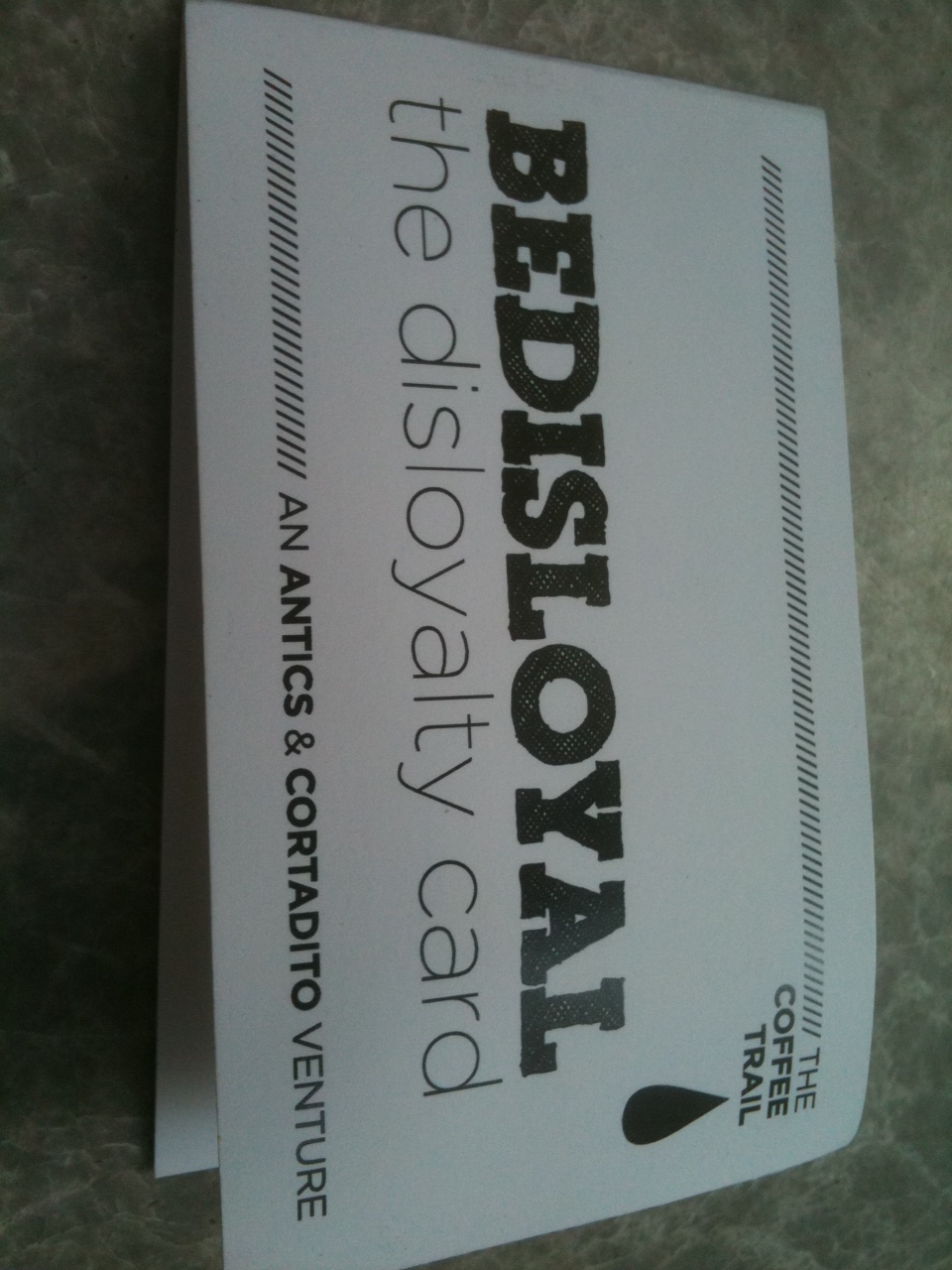Don’t forget to ask for their Be Disloyal Card, where you get your next coffee free AFTER visiting seven other coffee joints that Loysel has teamed up with. Its a Loyalty card with a twist!