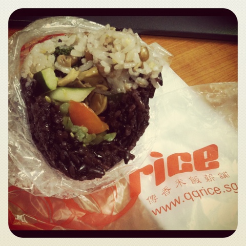 QQ Rice offers big (triangle or oval-shaped) balls of rice, with 5 fillings of your choice. And yes, there’s a range of healthy rice to choose from. Think of it as Subway meets Health Foods Shop.
